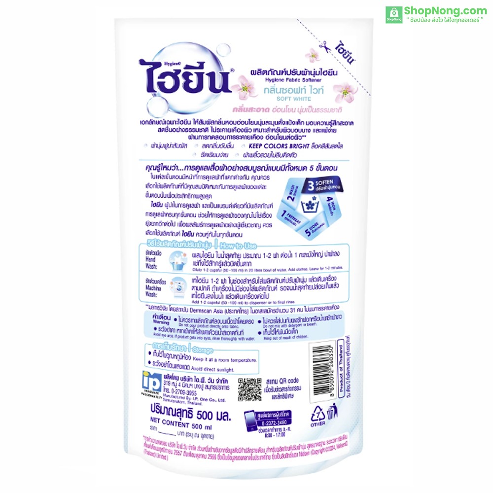 ไฮยีน (Hygiene) น้ำยาปรับผ้านุ่ม กลิ่นซอฟท์ไวท์ 500 มล. ราคาถูก | ช้อปน้อง